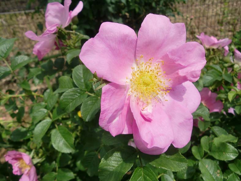 一重咲き、中輪、中香種 ロサモスカータとロサガリカの自然交雑と思われる。